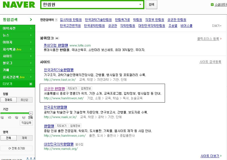 - 20. 네이버와 다음에 `한림원`을 검색해보았습니다.