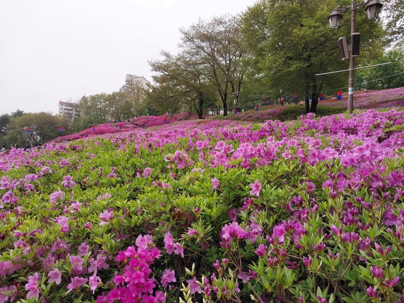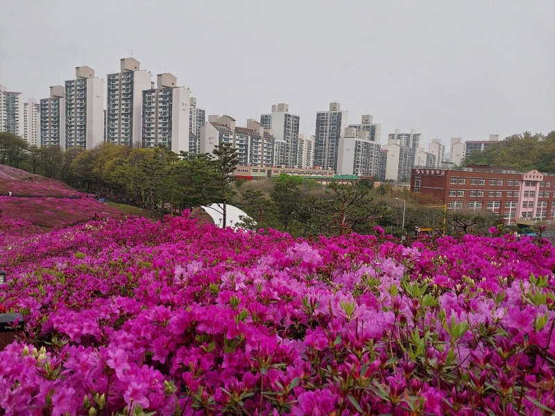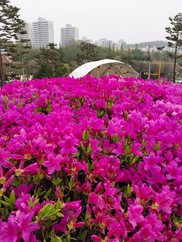 선홍색의 철쭉꽃이 너무 아름답습니다.
