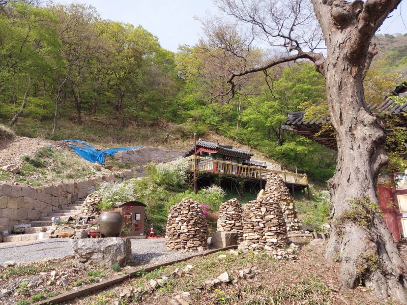 등지고 있는 山勢가 비구니승 닮은듯 부드럽고 溫化하면서